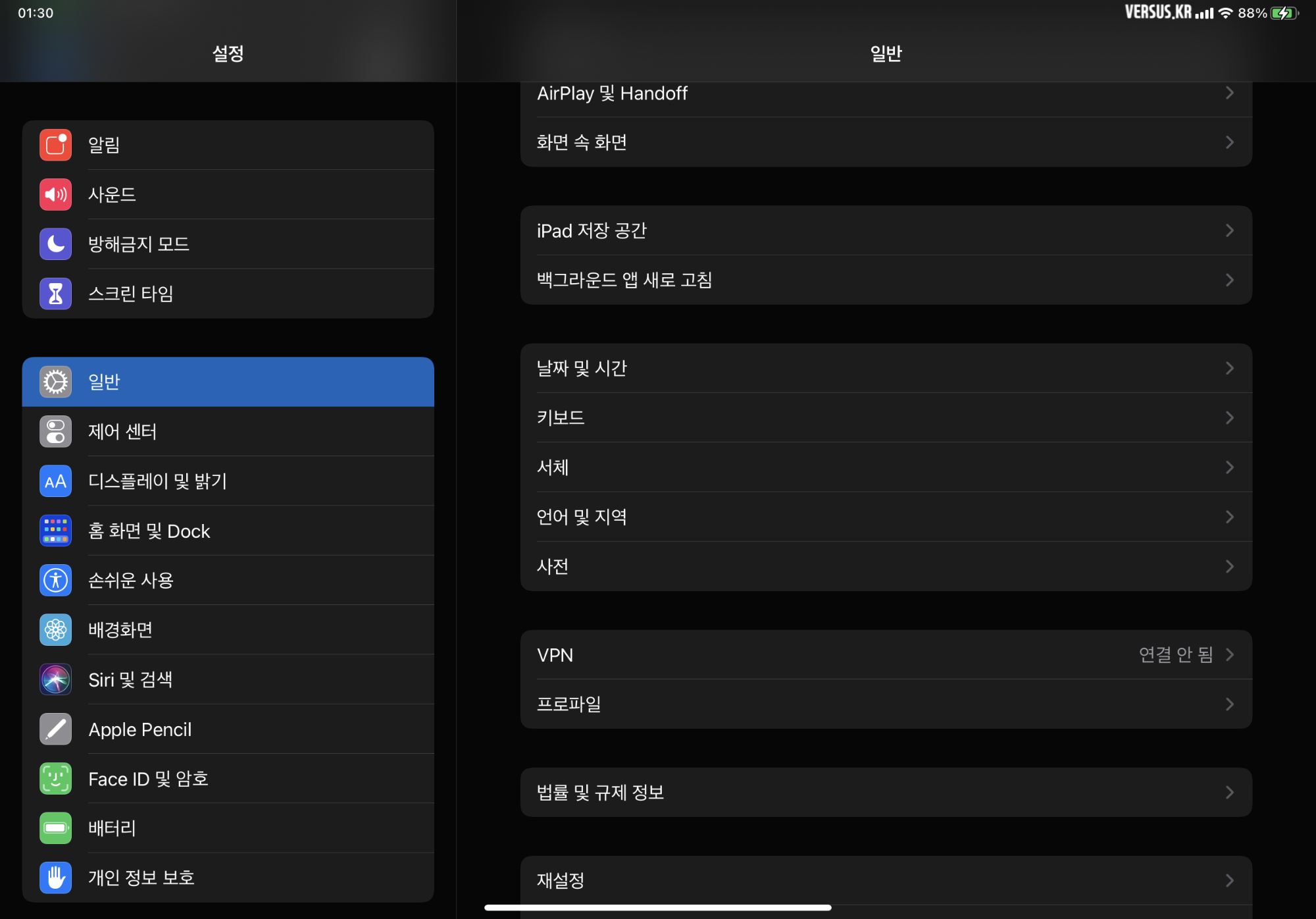 - 설정 - 일반 - 프로파일 <Click>