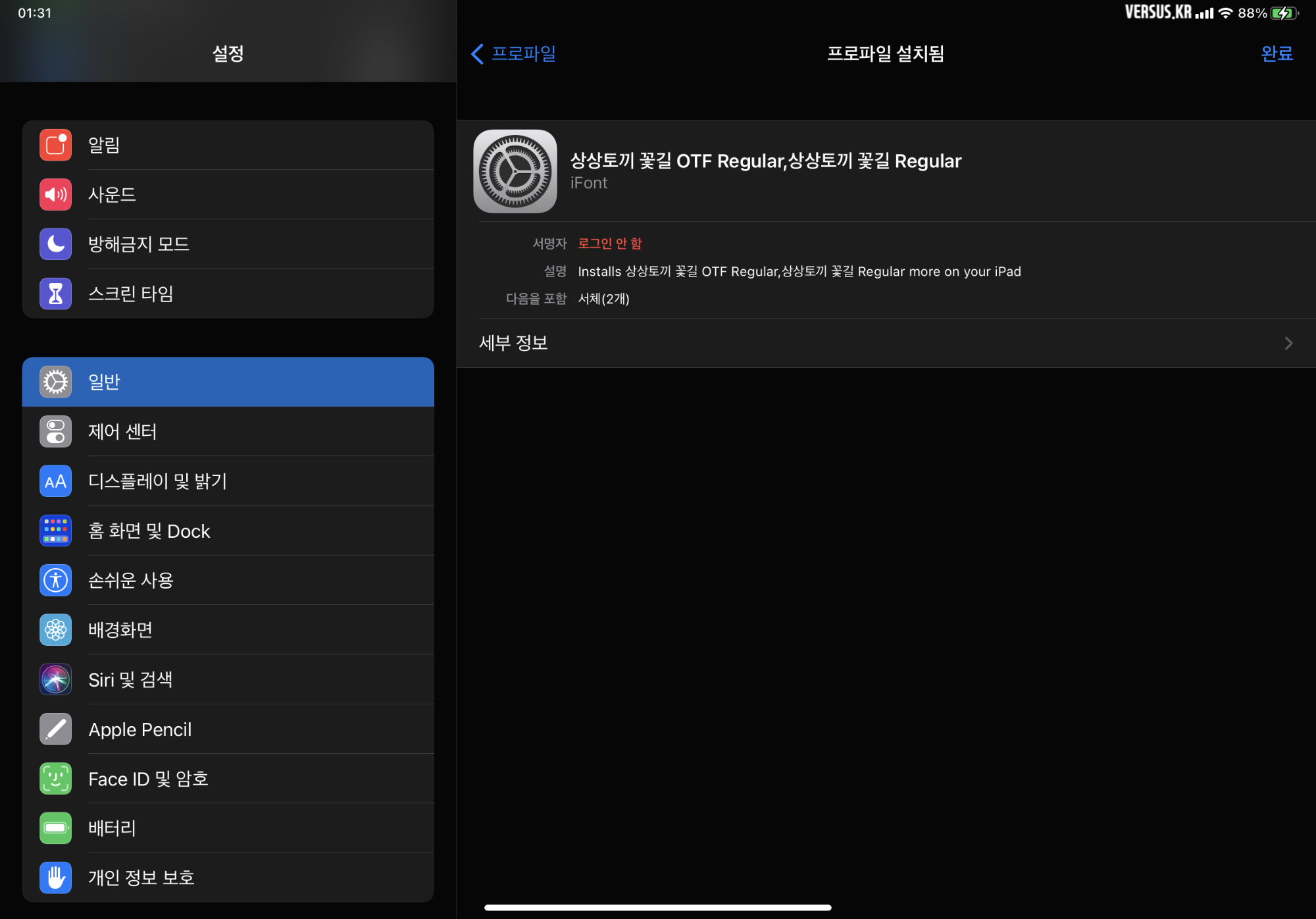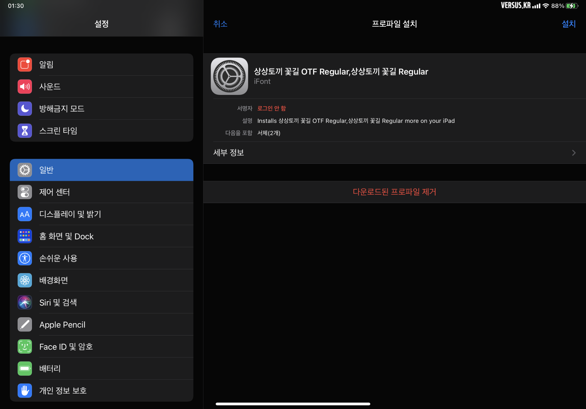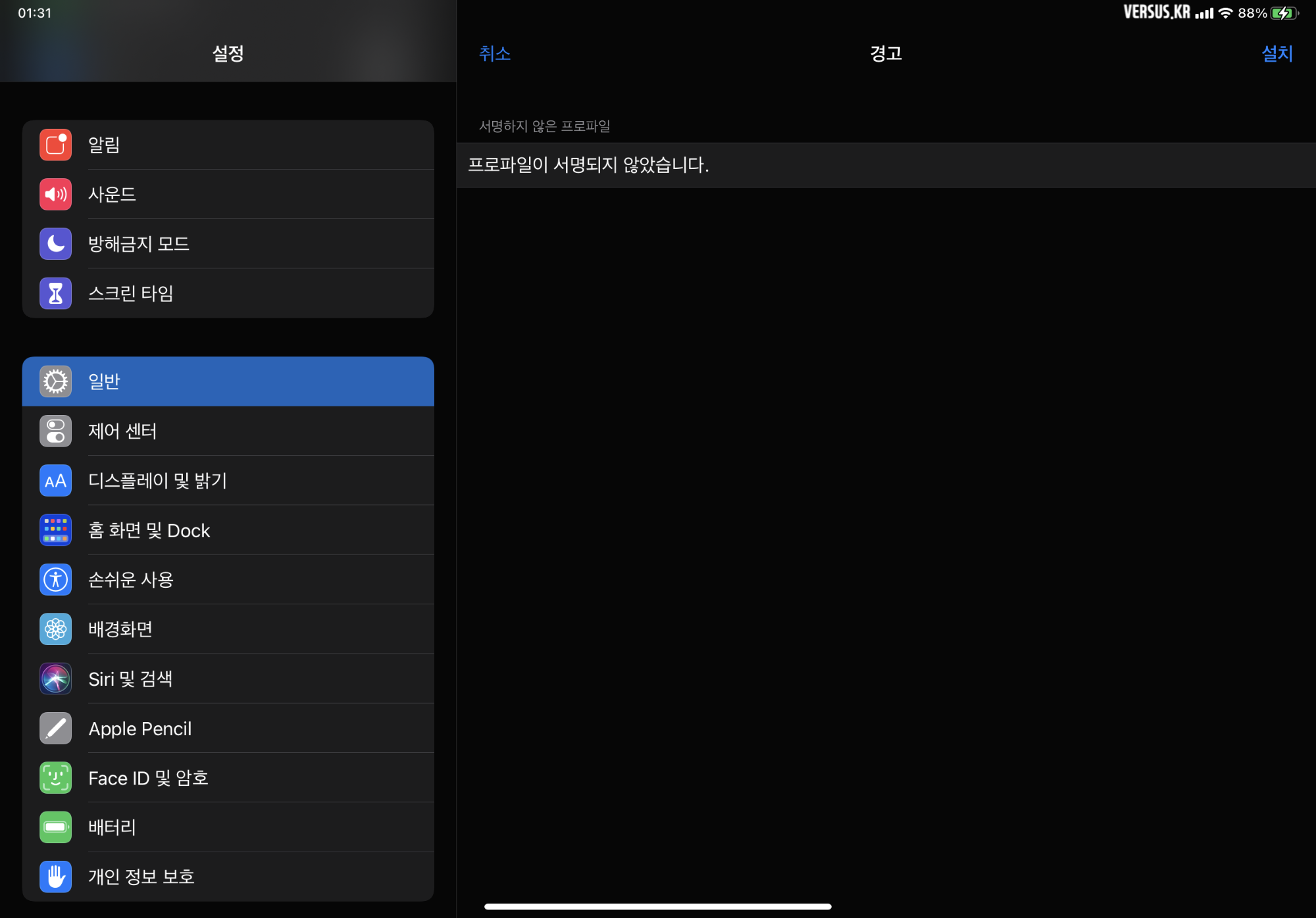 서명하지 않은 프로파일 - 프로파일이 서명되지 않았습니다.