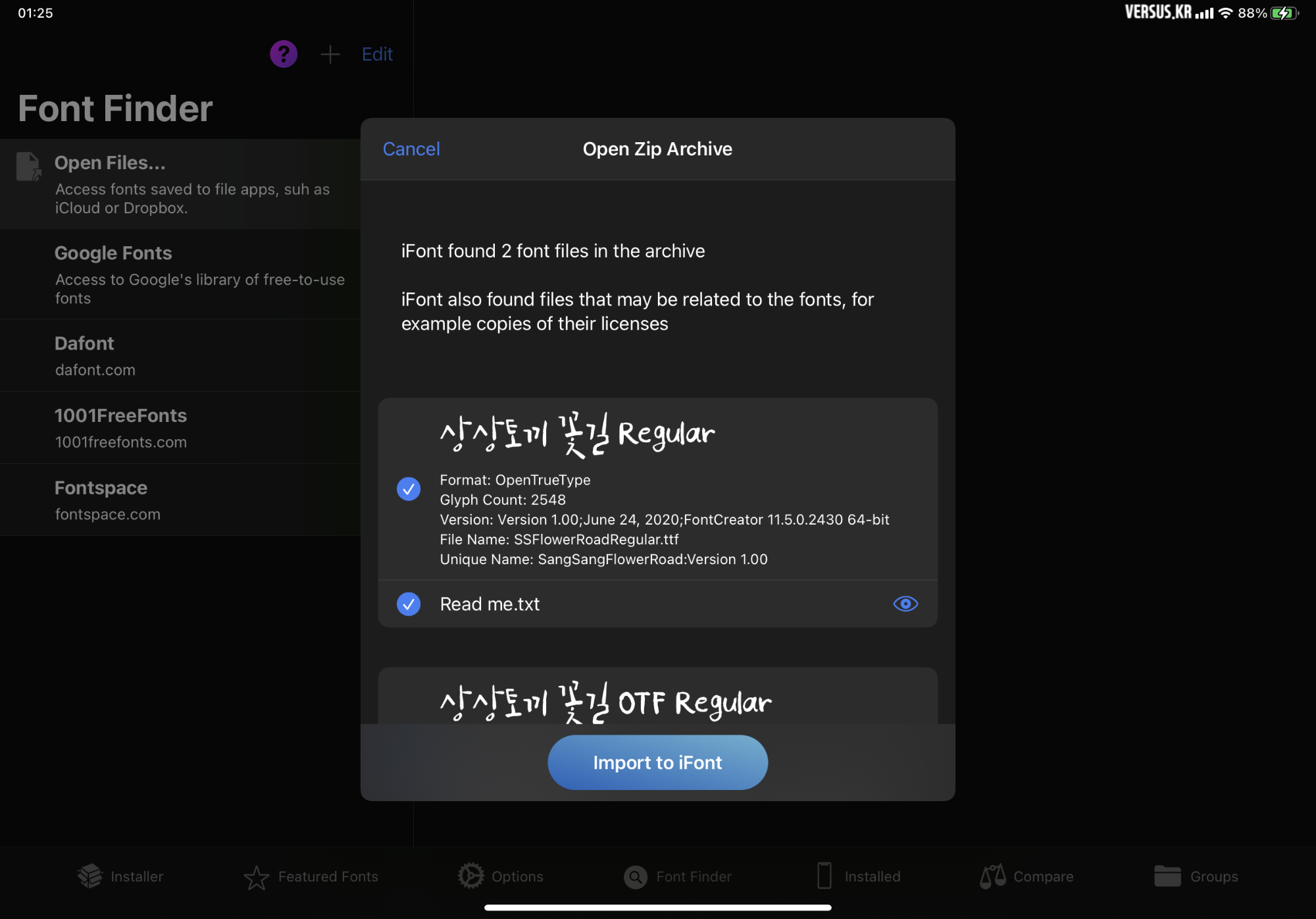 - Import to iFont <Click>