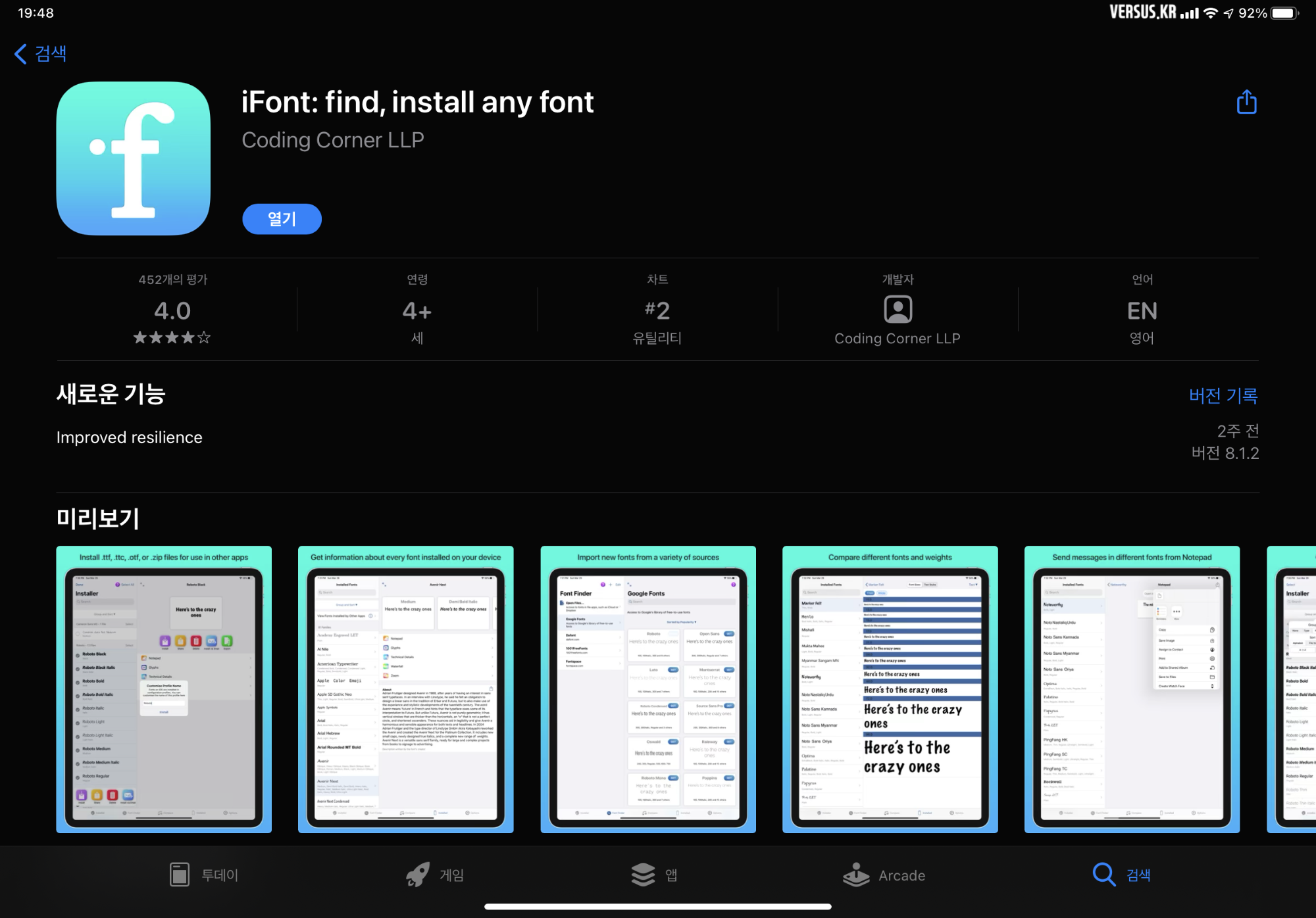 아이패드 Good Note 폰트(글꼴) 설치 - [App Store] - iFont 검색 - 설치