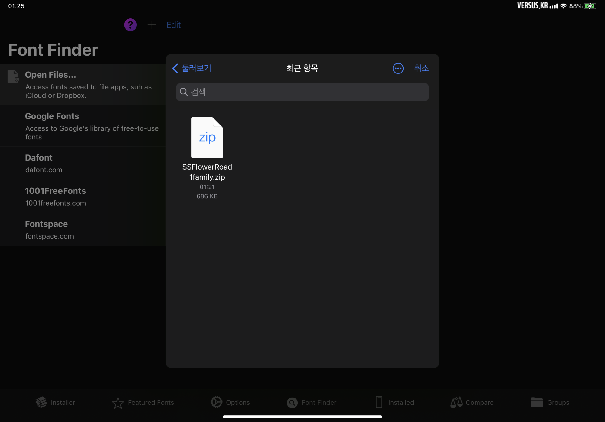 - iFont 에서 [Find Fonts to Install] 을 <Click> 합니다.