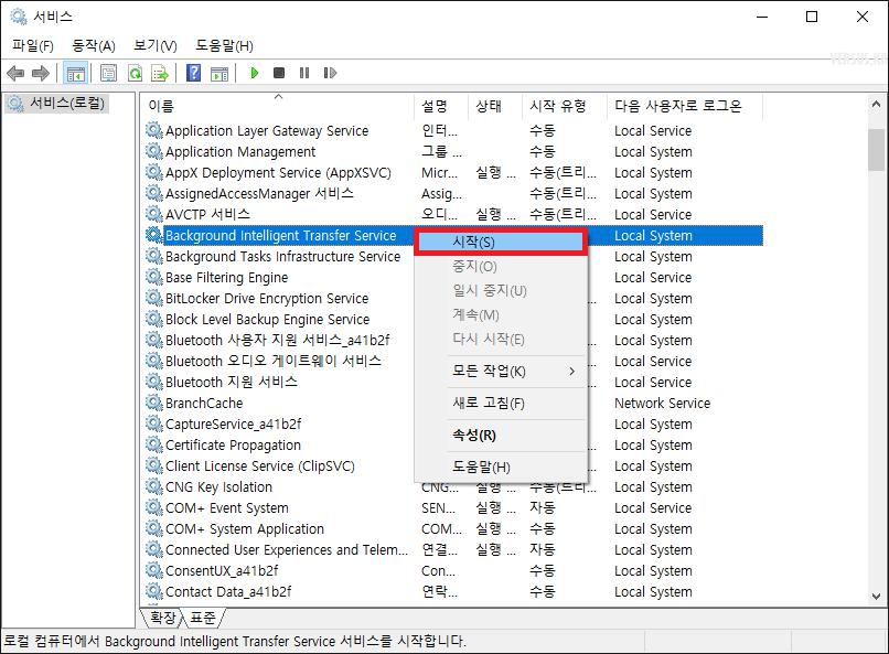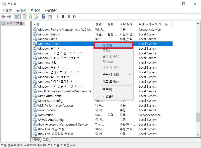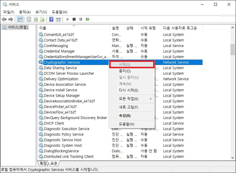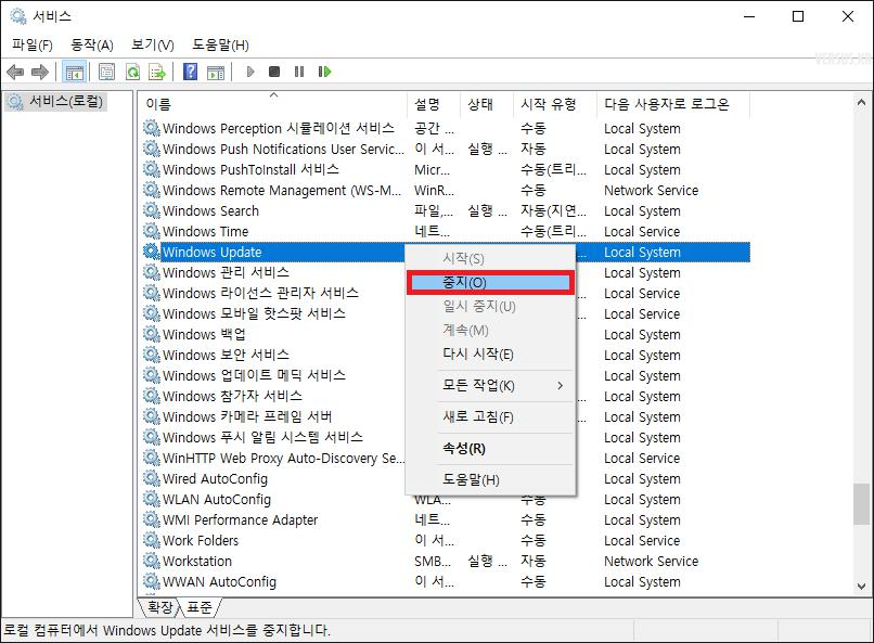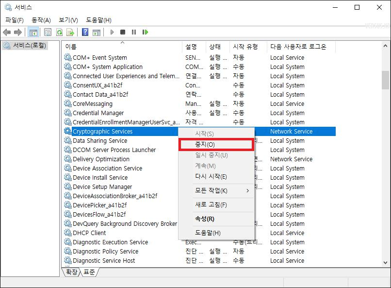 - 오른쪽 Mouse 클릭 - [중지(O)] <Click>