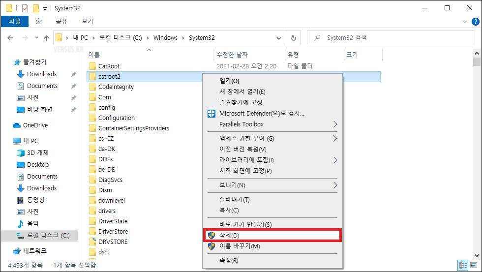 - 오른쪽 Mouse 클릭 - [삭제(D)] <Click>