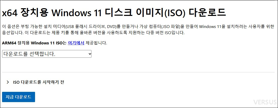 Windows 11을 설치와 업그레이드 하려면 Windows ISO 파일이 필요합니다.부팅 USB와 Virtual Machine에서 Windows 11을 실행할 때 이용합니다.