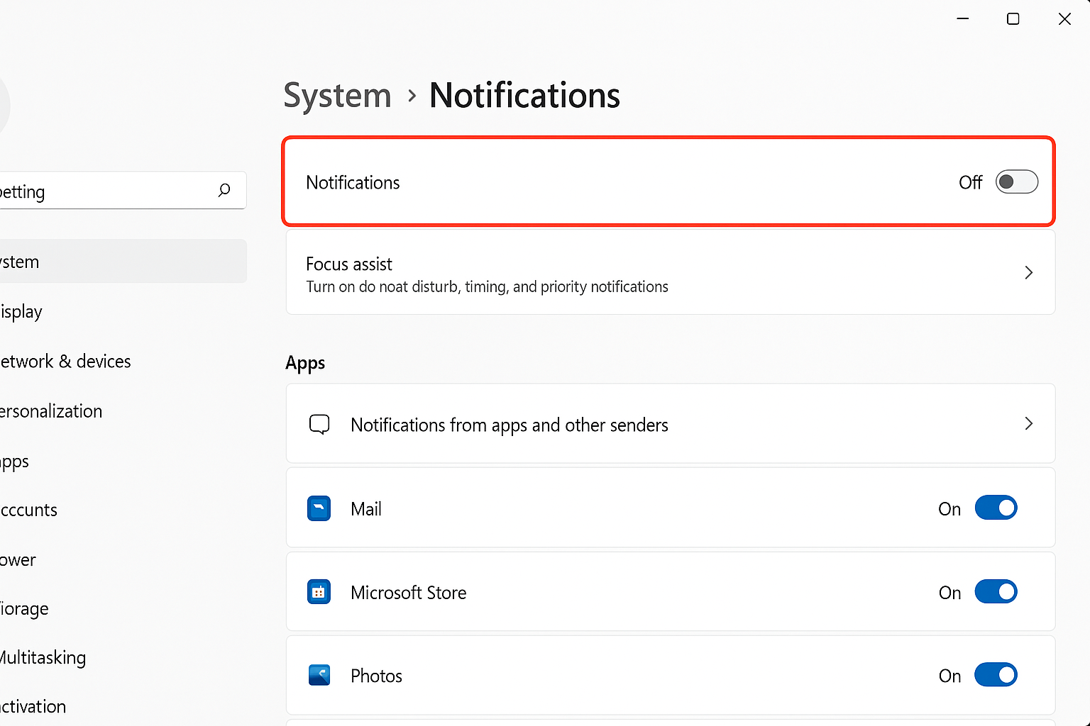 1. 윈도우 11 알림 off