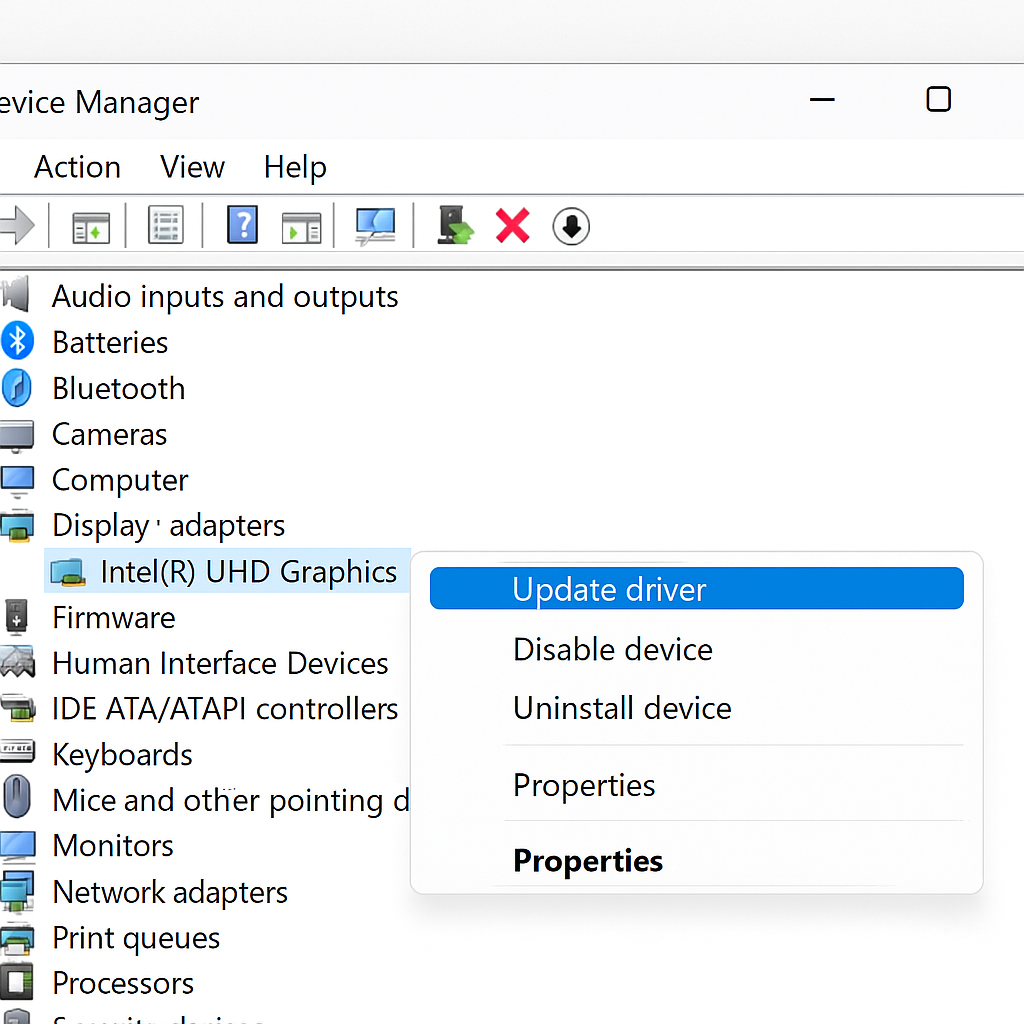 3. [그래픽 장치] 오른쪽 클릭 >>> [드라이버 업데이트] 선택