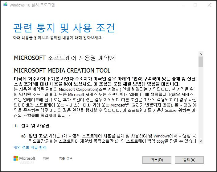 Windows 10 설치 프로그램 - [Windows 10 미디어를 만드는 중]