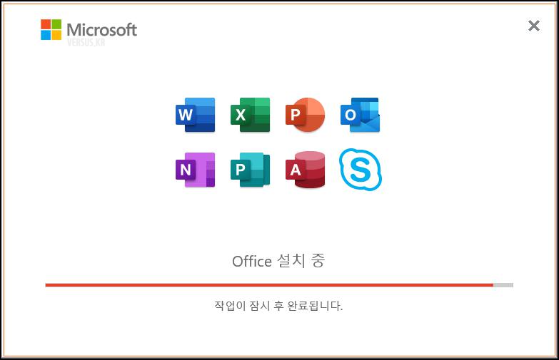 - Office 설치 중 - 작업이 잠시 후 완료됩니다.
