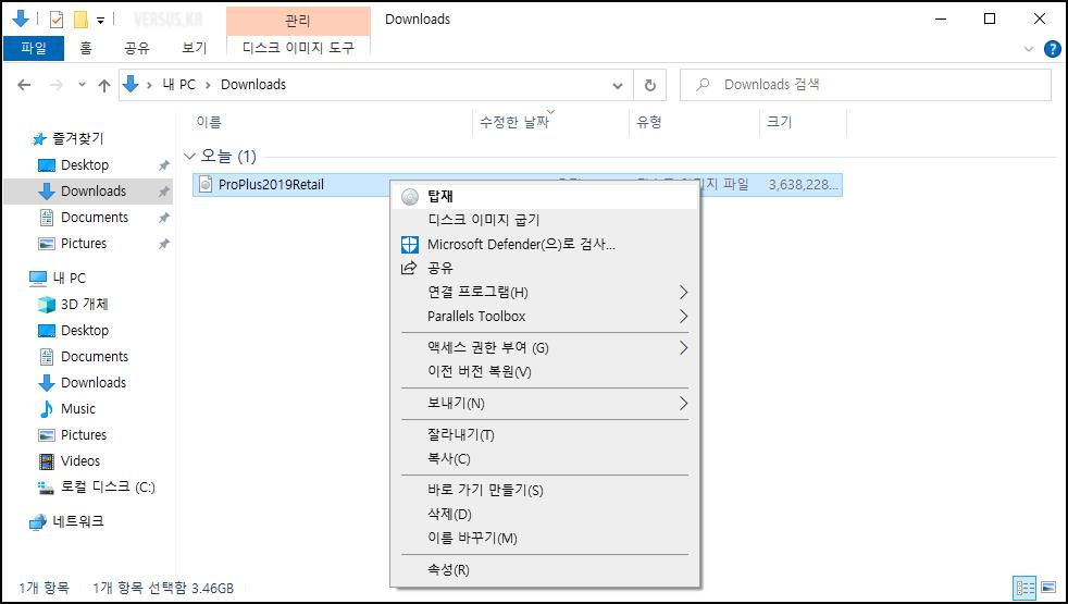 - 다운로드 폴더에서 [ProPlus2019Retail] 이미지 파일을 탑재합니다.