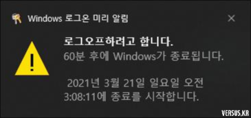 로그오프하려고 합니다. 60분 후에 Windows가 종료됩니다.